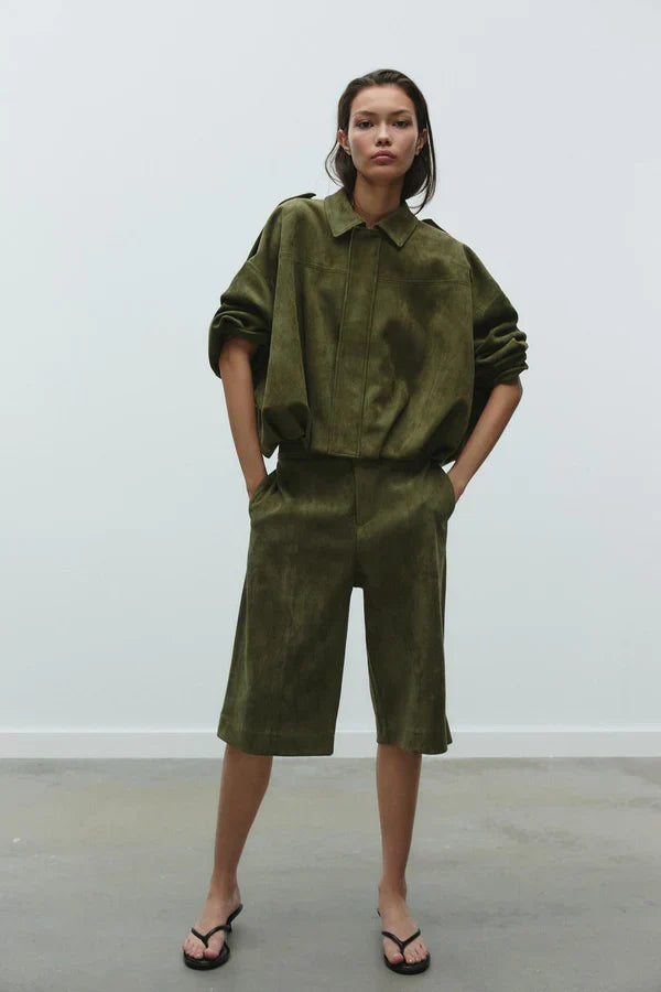 The Suede Bomber Jacket is a timeless piece that blends modern edge with classic sophistication. Designed with a luxurious suede finish and a flattering silhouette, it’s the perfect statement layer for day-to-night styling.